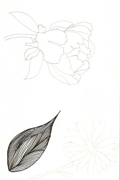 I decided to work in my sketchbook to produce some sketches and drawings to move some work forward and develop more. I picked the words FLOWER, GROW, DEVELOP for this little experiment.